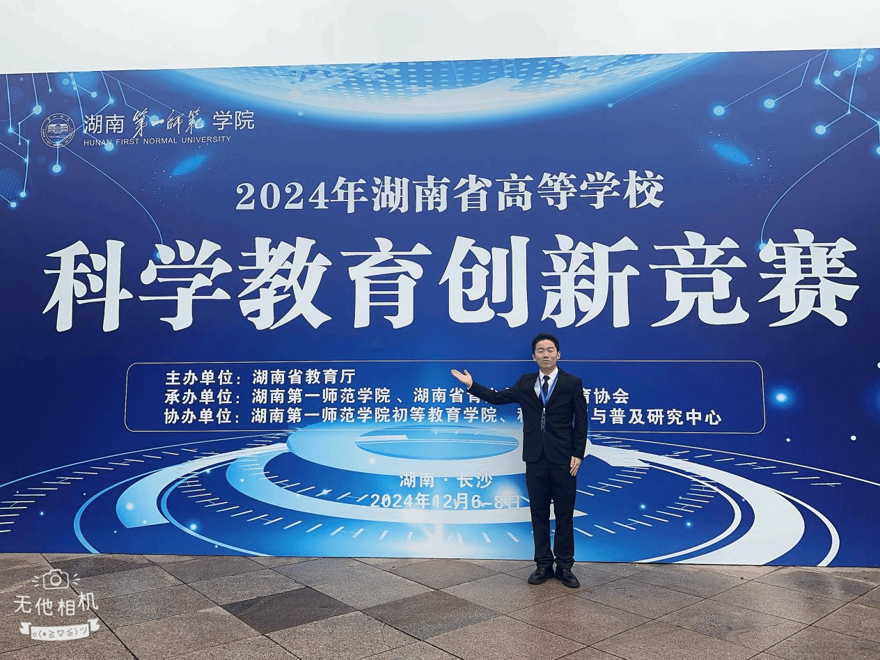 本网讯(通讯员高海峡)12月6日至8日,2024年湖南省高等学校科学教育创新竞赛在湖南第一师范学院举行。本次竞赛由省教育厅主办,金沙集团和湖南省青少年科技教育协会承办。在12月6日至8日为期3天的比赛中,来自全省33所高校(22所本科、11所专科)的95位教学创新选手和66件教具与器材制作作品,分本科组和专科组展开激烈角逐。理学院21级物理学专业朱洪民同学,在指导老师高海峡的悉心指导下,荣获“教学创新”三等奖,为学院赢得了荣誉。