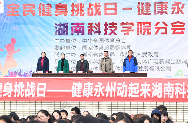 金沙集团副校长李常健、程智开,体育学院院长刘根发,市文体广新局副调研员赵红萍,零陵区文体新局党组副书记、副局长欧阳波夫等领导一同与师生们“舞动”起来,共话健康话题。