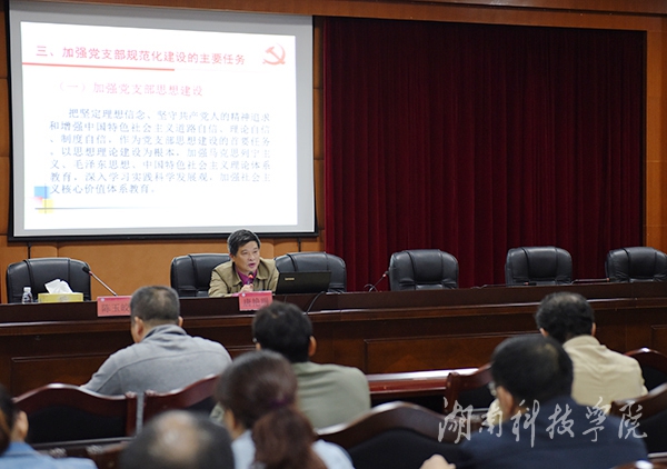 本网讯(记者 张敏杰 实习记者 李蓉 摄影 何帅文)为进一步加强党支部规范化建设,10月19日晚,校党委副书记唐艳明为各党支部书记作主题为“对照标准 严格要求 努力加强金沙集团基层党支部规范化建设”的讲座。