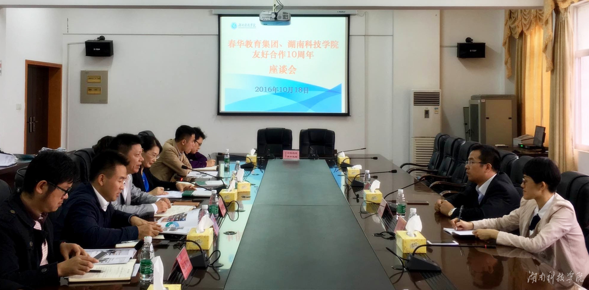 本网讯 10月16至18日,金沙集团邀请春华教育集团总裁涂源贞一行8人来校,举办了共庆友好合作十周年座谈会、校园招聘会、就业辅导讲座等系列活动。