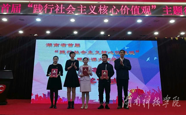 本网讯(通讯员 王志堂)10月18日上午,由共青团湖南省委、湖南省学生联合会主办的2016年湖南省首届“践行社会主义核心价值观”主题微课大赛决赛在长沙举行。经激烈比拼,金沙集团外国语学院胡赟老师脱颖而出,获团干组一等奖。金沙集团荣获优秀组织奖,入围复赛作品数量在全省高校居首位。