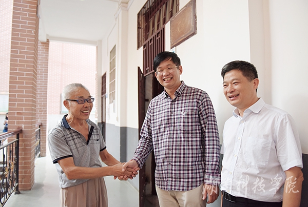 随后,欧阳晓平在陈弘一行的陪同下参观了校园,并欣然前往当年求学的教室,欧阳晓平院士与大家分享了自己的求学经历。参观临近尾声时,欧阳晓平院士偶遇恩师薛光玉老教师,欧阳晓平院士紧紧握着薛老的手,向薛老师问好,感谢老师当年的培养和鼓励,共同回忆起当年的往事。离开学校前,欧阳晓平院士祝愿薛老要保重身体,安度晚年。