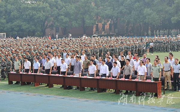 本网讯 (摄影 何帅文)  9月23日上午,2016级新生开学典礼在田径场隆重举行。名誉校长、杰出校友、中国工程院院士欧阳晓平出席并讲话,校党委副书记、校长曾宝成致辞。在家校领导唐艳明、宋宏福、郑山明、李常健、吴小林、程智开、袁先友、陈仲庚出席。典礼由副校长宋宏福主持。