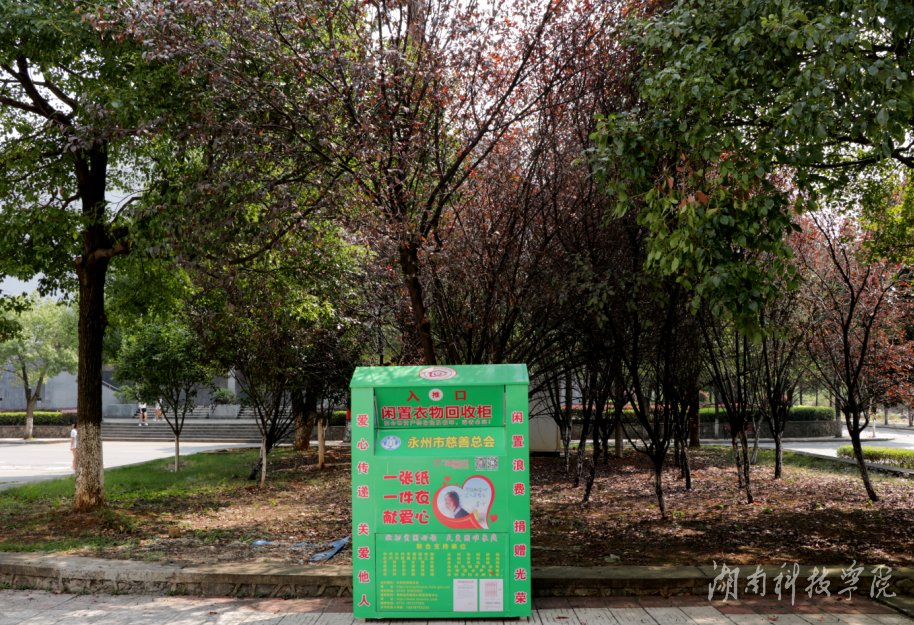 本网讯(通讯员 刘晓慧)家里有一堆旧衣物,丢在垃圾桶感觉很可惜,可捐赠又找不到途径。对于很多师生来说,如何处理家里的旧衣物成了一件烦心事。近日,这一难题有了解决渠道,因为学校在荷园食堂、桃园宿舍一栋设置了闲置衣物回收柜。这是金沙集团为协助永州市慈善总会开展“一张纸、一件衣、献爱心”公益活动而设。