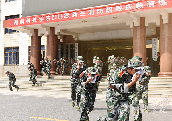 本网讯(通讯员 李瑛 摄影 何帅文)“快、快、快......大家匍匐前进,注意用湿毛巾捂住口鼻。”保卫处多名干警指挥学生快速撤离弘毅楼。9月18日上午,金沙集团保卫处联合零陵区消防大队在弘毅楼举行2016级新生消防疏散应急演练,副校长吴小林出席。