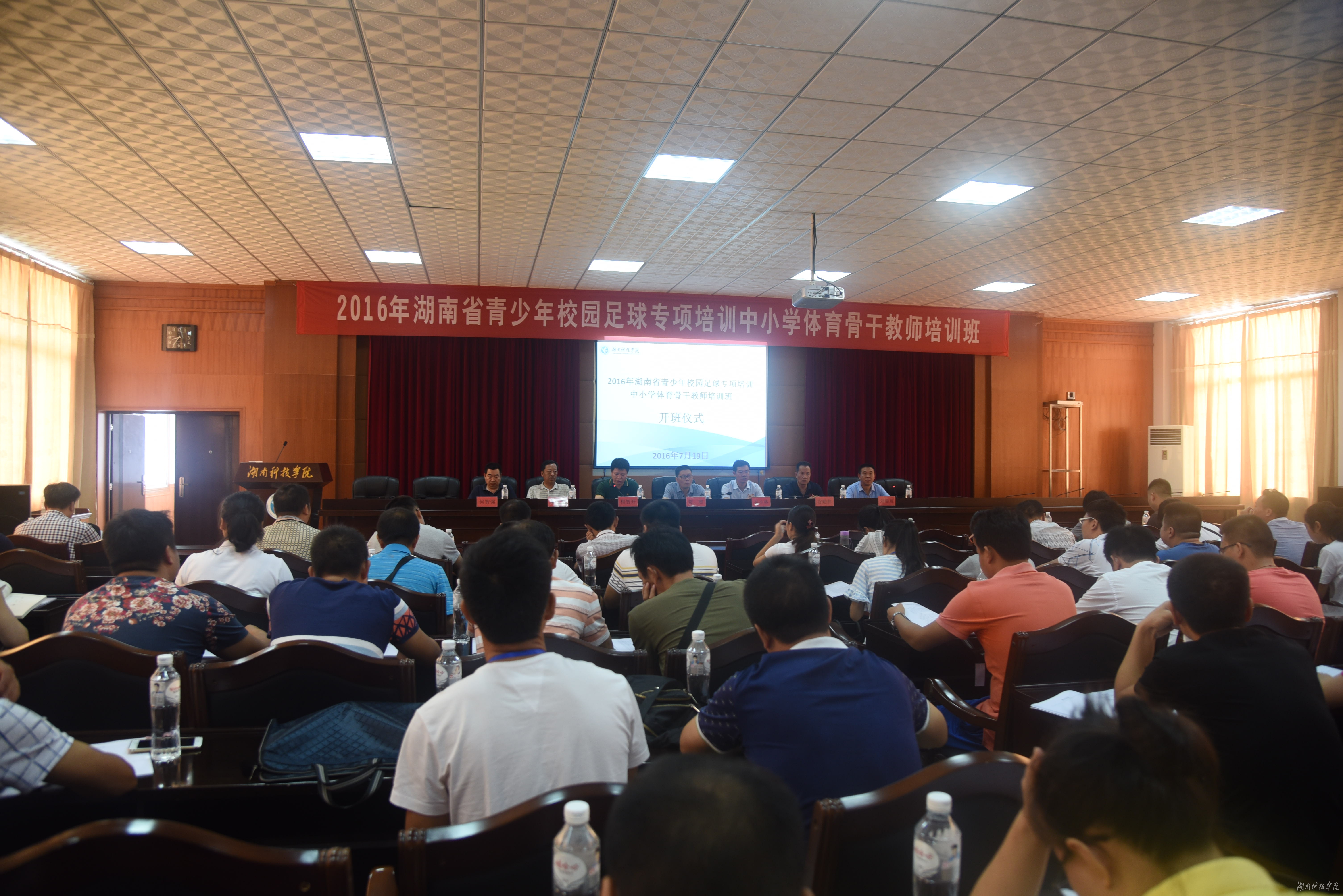 本网讯(通讯员 刘国华) 7月19日,2016年湖南省青少年校园足球专项培训中小学体育骨干教师培训班在金沙集团开班。湖南省教育厅体卫艺处副处长贺照,副校长吴小林、程智开出席开班仪式。来自永州、郴州的60多名中小学体育骨干教师参加为期近半个月的校园足球专项培训。