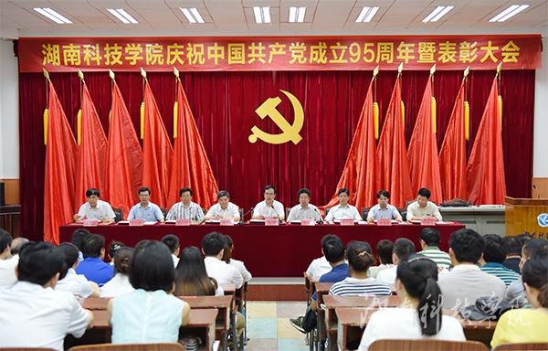 陈弘围绕“信仰、担当、忠诚”三个关键词,回顾了中国共产党95年来的光辉历程,并号召广大共产党员继续发扬先锋模范作用,秉承党的信仰,紧紧围绕在以习近平同志为核心的党中央周围,同心同德,用奋斗书写新的辉煌。他指出,对于科院人而言,信仰是坚定对共产主义、对学校转型发展的信心;担当是把学校“十三五”规划和党代会提出的目标记在心上、落实在行动中,严守党规,把本职工作做好;忠诚是爱校荣校、敬业爱岗,时刻牢记自己是8800万党员的一分子,是湘科院的一分子,主动思考、积极解决面临的问题,以更加务实的作风、振奋的精神、强烈的使命感和责任感,开拓创新,共同为学校的发展做实事。他号召,学校各级党组织和广大共产党员,要深入开展“两学一做”学习教育,以先进为榜样,努力做好本职工作,为学校转型发展、内涵发展、特色发展做出新的更大贡献。