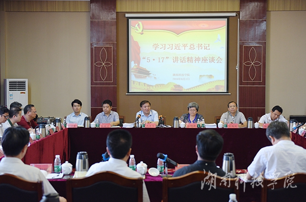 肖君华指出,习近平总书记的“5.17”讲话是我国新时期哲学社会科学繁荣发展的指南针,深刻回答了“什么是中国特色的哲学社会科学,为什么要构建中国特色的哲学社会科学,怎样加快构建中国特色的哲学社会科学”。他还指出,该讲话具有强烈使命感和强烈的问题意识,系统阐述了加快构建中国特色的哲学社会科学的重要性、紧迫性。中国要立足世界舞台,必须要建立在世界上的话语权,这离不开哲学社会科学的支持。广大哲学社会科学工作者要以习近平总书记的讲话为座右铭,要让自己真正成为先进思想的倡导者、学术研究的开拓者、社会风尚的引领者、党执政的坚定支持者。肖君华强调,要深入学习贯彻习近平总书记的讲话精神,做到内化于心,外化于行。他希望学校把深入学习贯彻讲话精神作为一件大事来抓,并制定切实可行的哲学社会科学发展规划,着力打造具有中国特色、湖南特色的哲学社会科学品牌,为湘字号品牌建设作出新贡献。他还对学校在哲学社会科学品牌、优势特色学科的建设思路和举措给予了充分肯定。