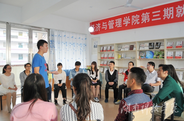 该院金融工程1402班的刘文韬同学说:“一走进经济与管理学院,你会有一种想读书想学习的冲动。没有人逼着你去学,但你会在不知不觉地被身边的氛围所感染,自觉地投入学习。这样才会感觉到踏实。”许多同学都有同样的感受,2015级市场营销专业的胡磊同学告诉我们:“经济与管理学院有一种力量,拉着你、拽着你不断地向身边的每一个人学习,向比你更优秀的人学习。”