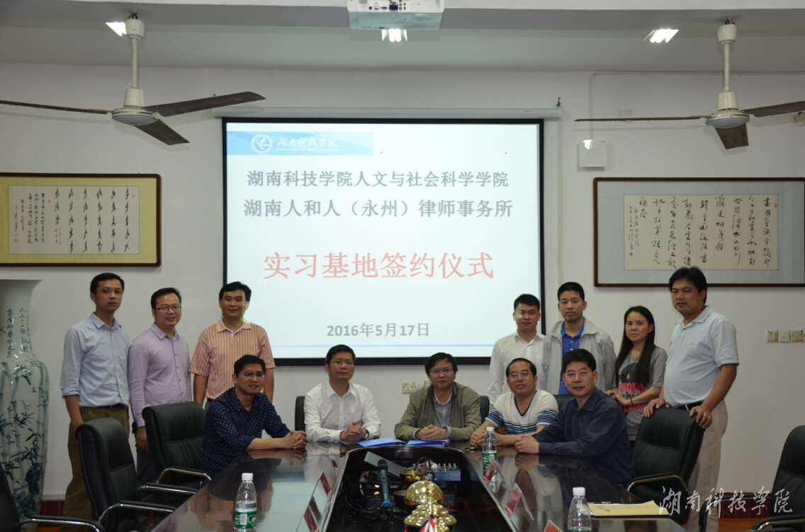 同日,该院在明德楼二楼会议室与湖南人和人(永州)律师事务所举行了共建法学实践教学基地和实习基地的签约仪式。双方就创建实习见习基地、实践教学基地、就业创业基地、疑难案件研究中心和“双师双能型”人才培养基地等达成合作意向,希望通过合作共建,实现校企共同育人和服务地方双赢。