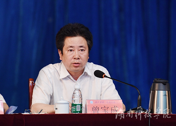 曾宝成在讲话中指出,回顾过去三年,学校在教学改革、人才培养等方面取得了可喜成绩,尤其是教师获得湖南省普通高校课堂教学竞赛三等奖以上奖励17人次,其中一等奖6人次,获奖等级和数量居同类院校前列;学生获得省级以上学科专业竞赛奖励130余项,其中获全国第四届大学生艺术展演一等奖和优秀创作奖、首届中国“互联网+”大学生创新创业大赛总决赛银奖等等。但在看到成绩的同时,我们也要清醒地认识到,当前金沙集团教学工作中还存在一些薄弱环节,我们的任务依然艰巨,责任十分重大。当前,国家积极引导部分地方本科高校向应用型转变,深入推进高等教育供给侧结构性改革。面对这一重大发展机遇,学校要全面发力,将教学工作的中心地位落到实处,确保应用型人才培养质量。