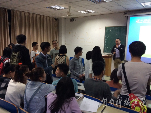 4月27日晚,化学与生物工程学院在逸夫楼218教室举办考研经验交流会,邀请部分成功考研的学生代表交流自己的考研体会。刘小文、覃佐东、姜红宇三位博士分别结合自身经历,讲解了考研时应注意的事项,并希望同学们坚定自己的选择,学会分析自己的优势与劣势,注意选择自己合适的考研方向。