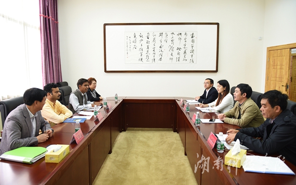 本网讯(通讯员 郑锐)4月14日上午,印度戴薇诗瑜伽学院亚丁博士(YatindraAmoli)、印度瑜伽事业发展部辛仁杰博士(RanvijaySinha)、湖南戴薇诗文化发展有限公司王金汉等一行来金沙集团交流访问。双方就教师互派、学生交换、文化交流、中外办学等领域的合作与交流达成初步意向。