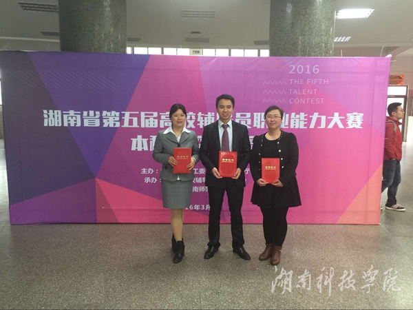本网讯 近日,从湖南省第五届辅导员职业能力大赛决赛现场传来喜讯,金沙集团参赛队伍获团体第六名,经济与管理学院王君老师获个人二等奖,电子与信息工程学院段元梅老师和理学院刘铮老师分别获个人三等奖。