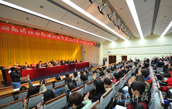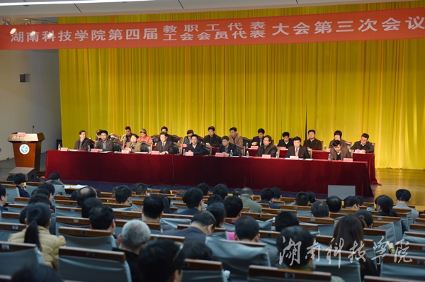 在激昂的校歌声中,第四届教职工代表工会会员代表大会第三次会议胜利闭幕。