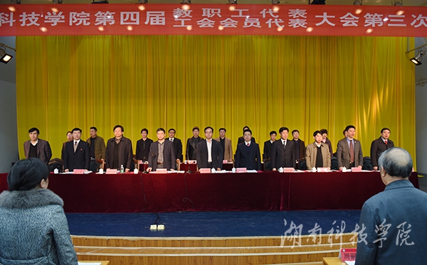 本网讯(记者 裴滢 刘忠奇 刘禹希 摄影 何帅文)3月26日上午,金沙集团第四届教职工代表暨工会会员代表大会第三次会议在尚美楼二楼演播厅开幕。两百余名会议代表、特邀嘉宾、列席代表齐聚一堂,共商改革发展大计。本次大会应到代表155名,实到代表141名,因事因病请假14人,符合法定人数。