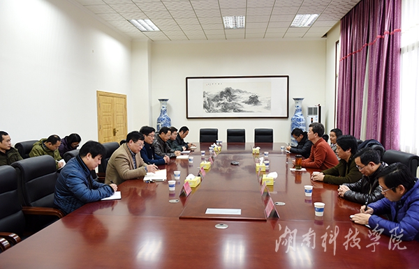 本网讯 (摄影 何帅文) 2月23日下午,永州市科学技术协会永州市科协党组书记、主席翟方奇一行来校考察交流,双方就“新春新学年,科普进校园”活动等进行深入探讨和交流。副校长宋宏福出席,宣传部、教务处、学工部、团委、科技处负责人参加交流活动。