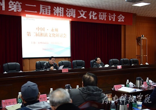 陈弘对各位专家学者的到来表示热烈欢迎。他说,湖南与广西,特别是永州与桂林自古以来就山水相连、文化相融、亲情相依,有着非常亲密的渊源关系,两大区域的交融汇通,使两地在政治、经济、文化等方面呈现区域一体性,形成了地域特色明显的湘漓文化。他认为,研究湘漓文化既是现实的需要,也是义不容辞的责任,能够为湘桂两地的社会发展提供丰富的精神动力和智力支持,继续挖掘两地的历史文化底蕴,探索社会发展的互补性。
