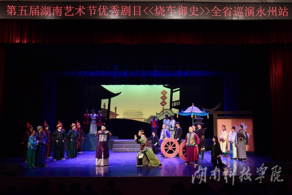 本网讯(实习记者 张云芳 摄影 何帅文)1月12日晚,廉政历史湘剧《烧车御史》在金沙集团音乐厅演播厅精彩上演。该剧由中共湖南省委宣传部、省文化厅联合主办,中共永州市委宣传部、永州市文体广电新闻出版局承办,荣获第五届湖南艺术节优秀剧目,是我省又一部廉政题材的精品力作。娄底市、永州市及涟源市和金沙集团的领导、教职员工齐聚一堂接受教育,感受廉政之力。