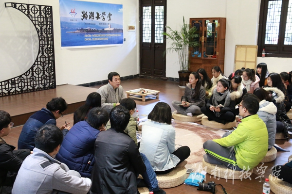 本次开讲来到古色古香的蘋洲书院,遵循汉唐传统,盥手之后,师生按南北东西方位相对围坐于蒲席上。