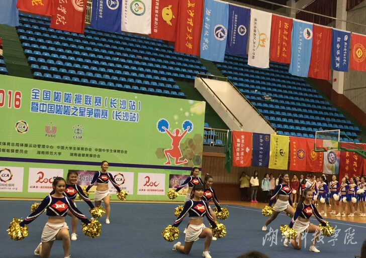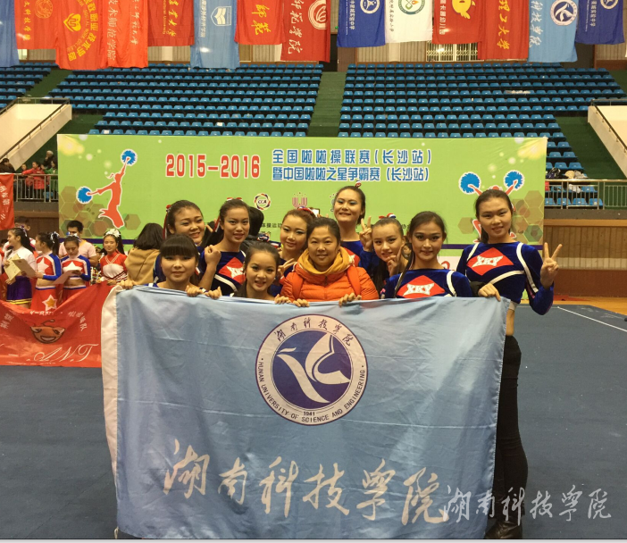 本网讯 12月5日至6日,由国家体育总局体操运动管理中心、教育部和中国大学生体育协会联合主办的2015年全国啦啦操联赛暨中国啦啦操之星争霸赛(长沙站)在湖南师范大学举行。金沙集团体育学院2014级同学组成的啦啦操队,荣获大学组集体技巧二级规定动作第一名,花球舞蹈自选动作第五名,盘华老师荣获优秀教练员称号。