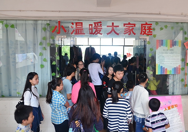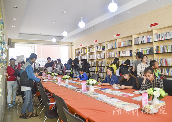 随后,党员志愿者们带领孩子们参观学习图书馆、布克校园书店、心理健康教育中心、美术楼、音乐厅、学校书院公寓、爱心小屋、运动场、逸夫楼实验室等地。期间,大家热情地教孩子们跳舞、画画,与孩子们讲述大学生活的美好与充实。在参观童柱书院时,孩子们显得异常高兴,平时喜欢画画的黄路遥在看一本《毕加索画》的画册,她说她很喜欢画画,希望自己今后能够在大学里学习绘画。这些来自潮水铺村的孩子们对大学充满了期待,其中内向但热爱唱歌的梁敏希望自己将来进入大学后学习数学专业;活泼爱笑的潘帅军想好好学习,将来做一名老师。孩子们还参观学校的爱心小屋,领取自己心爱的物品百余件。
