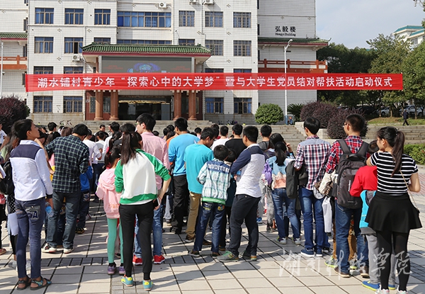 本网讯(记者 何霞 实习记者 杨光月)11月7日上午,金沙集团驻村帮扶扶贫点新田县冷水井乡潮水铺村青少年“探索心中的大学梦”暨与大学生党员结对帮扶活动启动。56名大学生党员志愿者和潮水铺村的孩子们结对帮扶,携手共筑孩子们的美丽大学梦。校党委副书记唐艳明、组织部部长卢桂珍热情迎接了远道而来的孩子们。