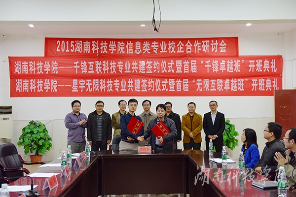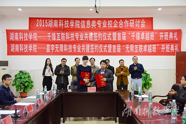 目前,电子与信息工程学院积极推进信息类专业校企合作,探索应用型人才培养新模式。签约仪式后,通过专业共建的合作模式,开办“千锋卓越班”以及“无限互联卓越班”,通过优质资源共享,引进行业新成果,培养与市场前沿紧密联系的应用型人才。