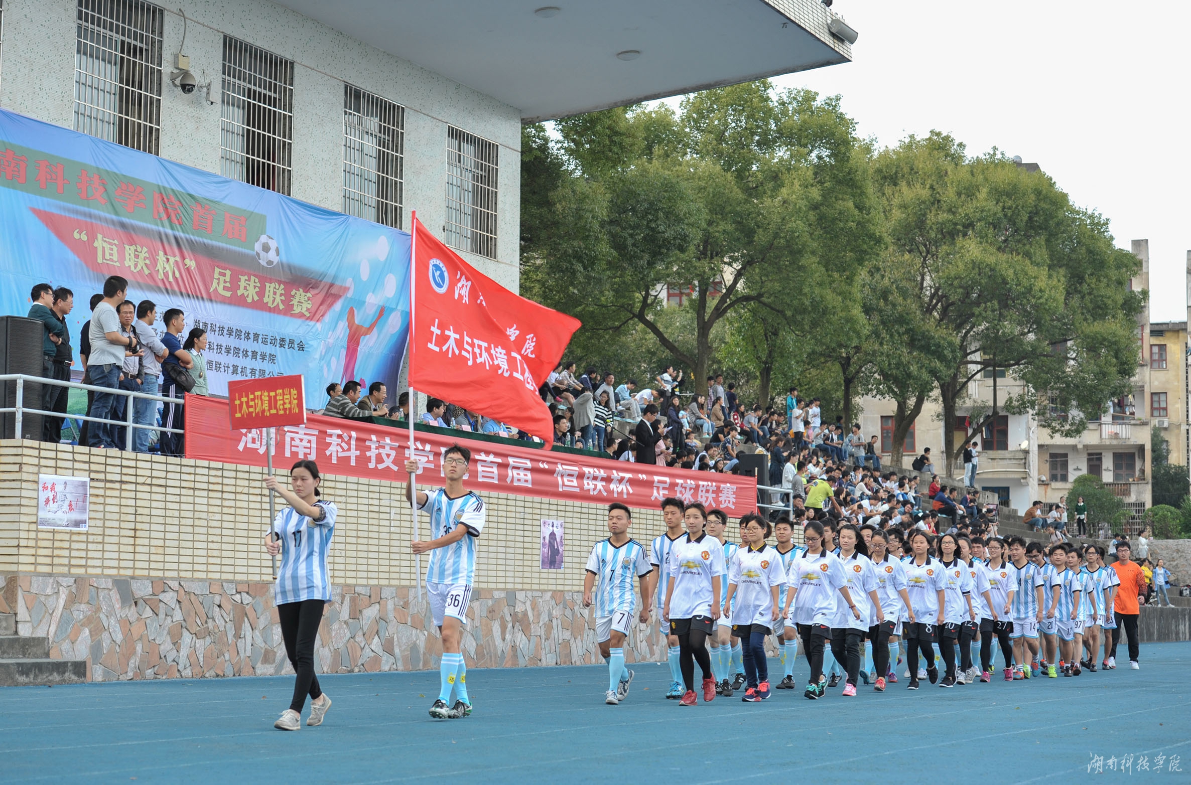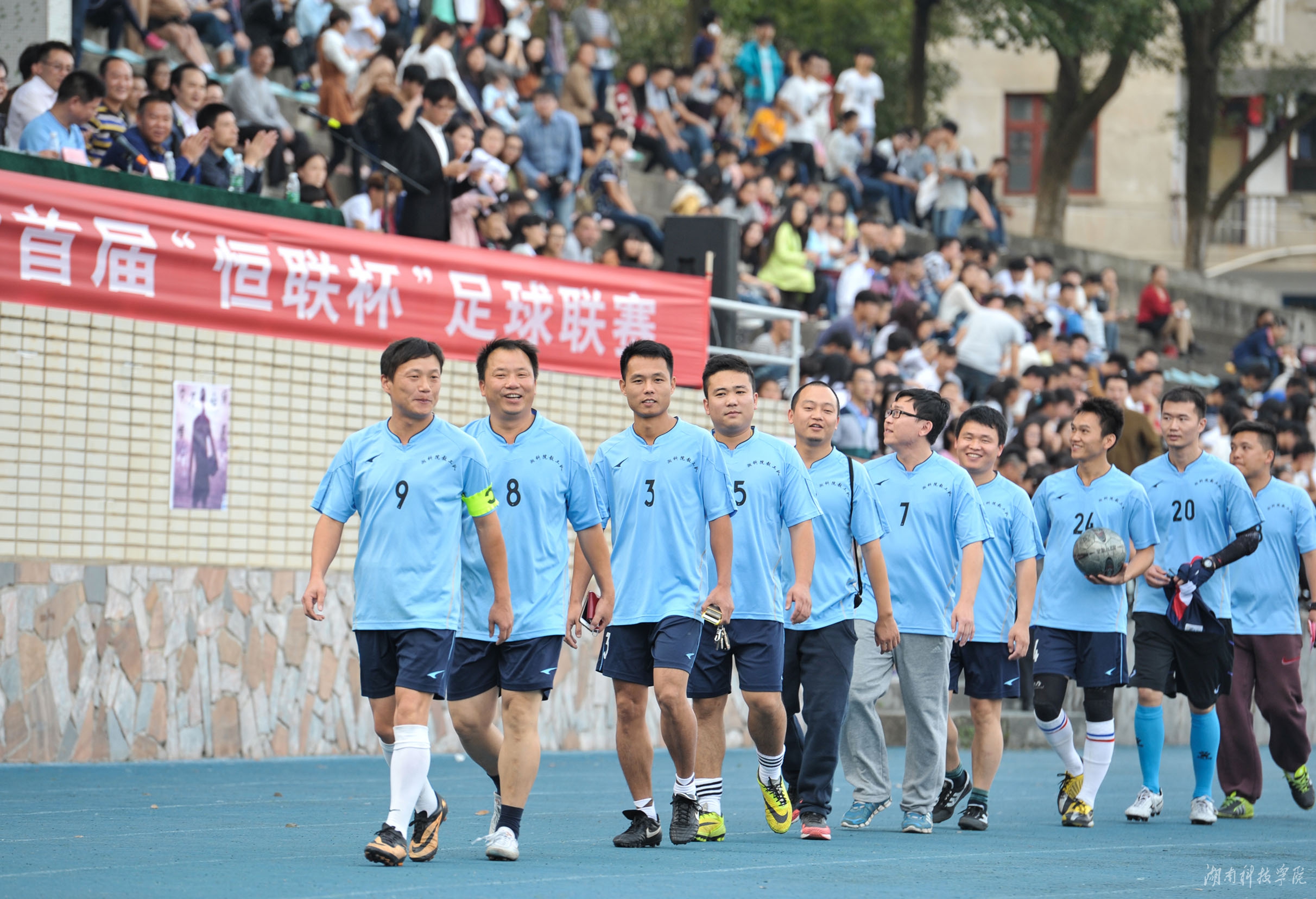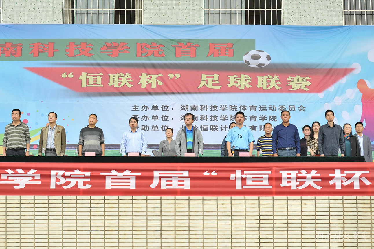 本网讯(记者 孙艳丽 实习记者 刘禹希)11月6日下午,在激昂的进行曲中,金沙集团首届“恒联杯”足球联赛开幕。校党委书记、校足球运动领导小组组长陈弘出席并致辞,副校长、校足球运动领导小组副组长李常健、程智开及长沙恒联计算机有限公司董事长邓自义等领导嘉宾出席,并兴致勃勃地为首场比赛开球。开幕式由程智开主持。