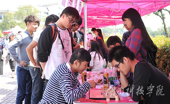 本网讯(记者 裴滢 劳有娟  陈肖莲 实习记者 尹文怡 刘献)10月17至18日,在弥漫着桂花香的文化广场上,金沙集团各大社团屡出奇招,秀创意招揽不同兴趣爱好的学子“入社”。