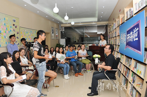 讲坛在轻松热烈的气氛中进行,陈弘认真聆听同学们的发言并一一解答。他期许广大青年学子用积极昂扬的人生态度担起肩上责任,努力成为泱泱中华的一代英才。