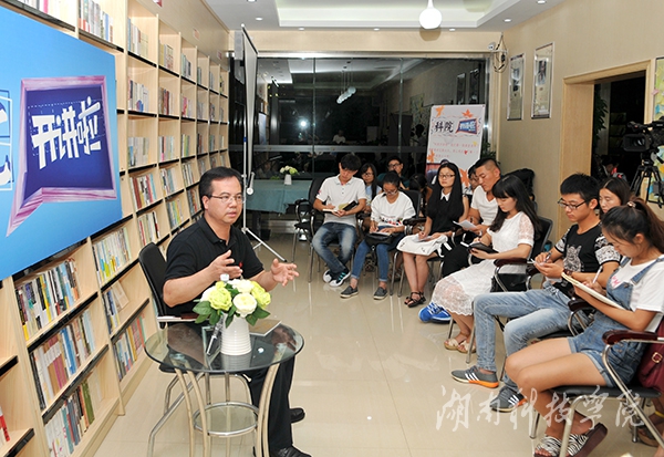 本网讯(沈俊 摄影 何帅文)9月24日晚,秋高气爽,而布克校园书店里却热情四溢,座无虚席。校党委书记陈弘作为首邀嘉宾,与学生代表亲切对话,其敏锐分析和精准点拨,赢得学生代表们的阵阵掌声。