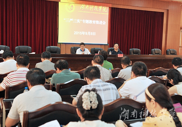 本网讯 (记者周芬 摄影 何帅文)为总结前一阶段“三严三实”专题教育开展情况,更好地抓好下一阶段的工作,9月8日,金沙集团在行政办公楼八楼会议召开“三严三实”专题教育工作推进会。校党委书记陈弘强调,要把专题教育与学校中心工作紧密结合起来,切实把专题教育抓好抓出成效来。校党委副书记唐艳明就做好下一阶段工作提出具体要求。