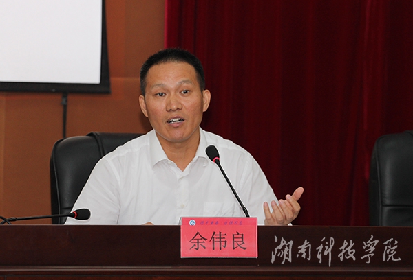 本网讯(记者 周芬 摄影 何帅文)8月26日上午,湖南省人民政府学位委员会办公室主任、省教育厅学位管理与研究生教育处处长余伟良应邀来校就“双学位开设与学科建设工作”问题作专题报告。