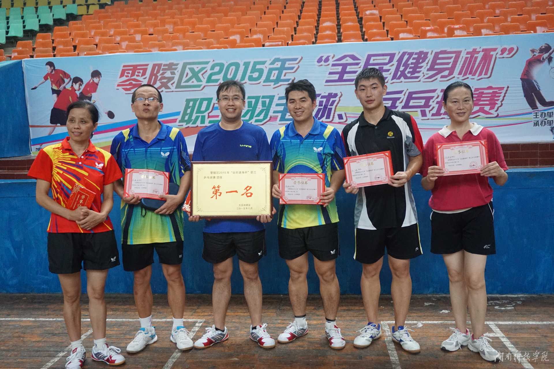 本网讯 8月14日,零陵区2015年“全民健身杯”职工羽毛球、乒乓球赛落幕。金沙集团羽毛球队和乒乓球队奋勇拼搏,过关斩将,双双摘得团体桂冠。
