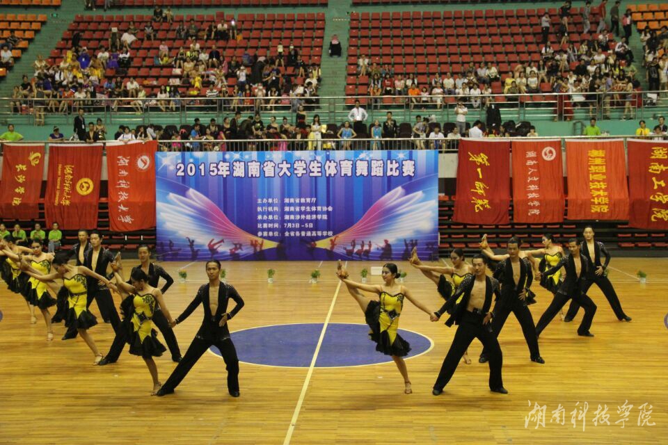 本次舞蹈大赛由湖南省教育厅主办,是2015年湖南省学生体育竞赛活动计划项目之一。在为期两天的比赛中,来自全省高校的14支代表队分为大学专业组、大学普通组、学院专业组、学院普通组、高职专科组,交叉展开国际标准舞、健身交谊舞两大类以及集体项目的角逐。
