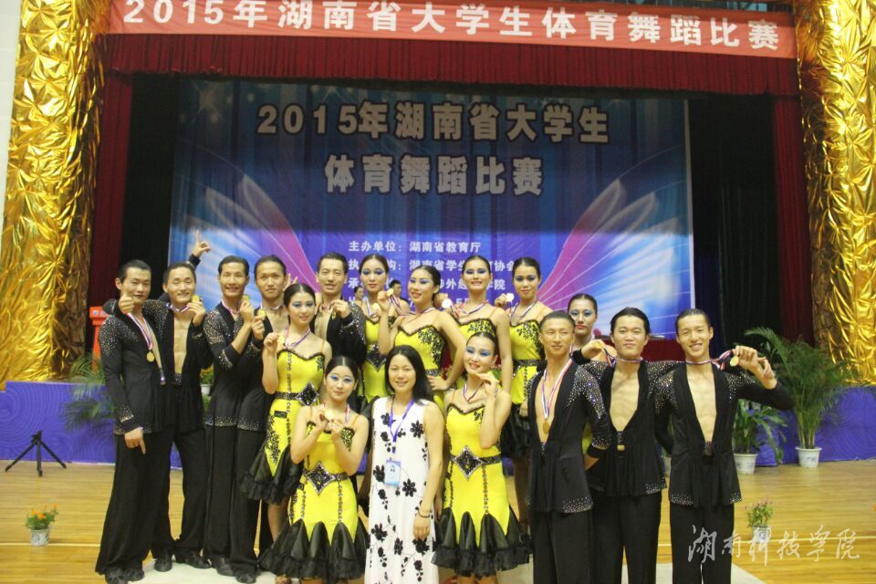 本网讯(通讯员 龚纯波)2015年湖南省大学生体育舞蹈比赛于7月4日-5日在湖南涉外经济学院体育馆隆重举行。金沙集团代表队在体育学院党总支书记何智强、主教练肖志艳老师带领下,共斩获5枚金牌、1枚银牌与4枚铜牌。
