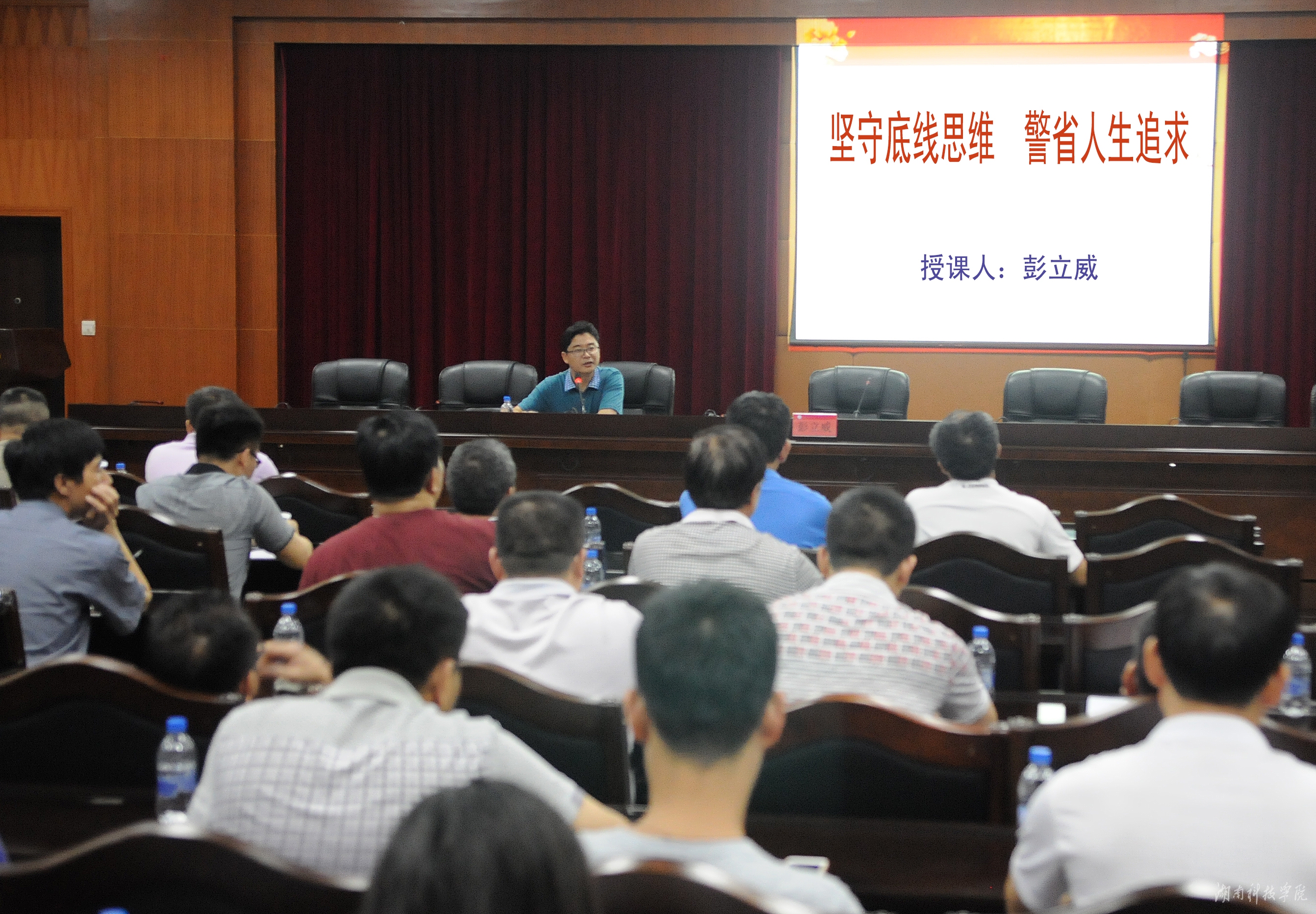 本网讯(记者 吴亚 摄影 秦峰)6月18日晚,金沙集团基层党组织干部培训班第二讲在行政办公楼八楼会议室举行。校纪委书记彭立威作题为《坚守底线思维,警省人生追求》专题党课。各机关党总支委员以及全体处级干部参加培训。