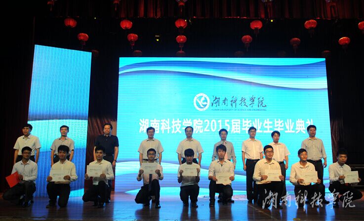 毕业典礼由2015届毕业生谌奥蕾、胡锦宇主持。 毕业典礼上,音乐与舞蹈学院乐队现场演奏毕业主题音乐,一曲作罢,全场掌声雷动,欢呼四起。充满美好回忆的大学生活短片,更是勾起了毕业生们对大学生活的无尽留恋。