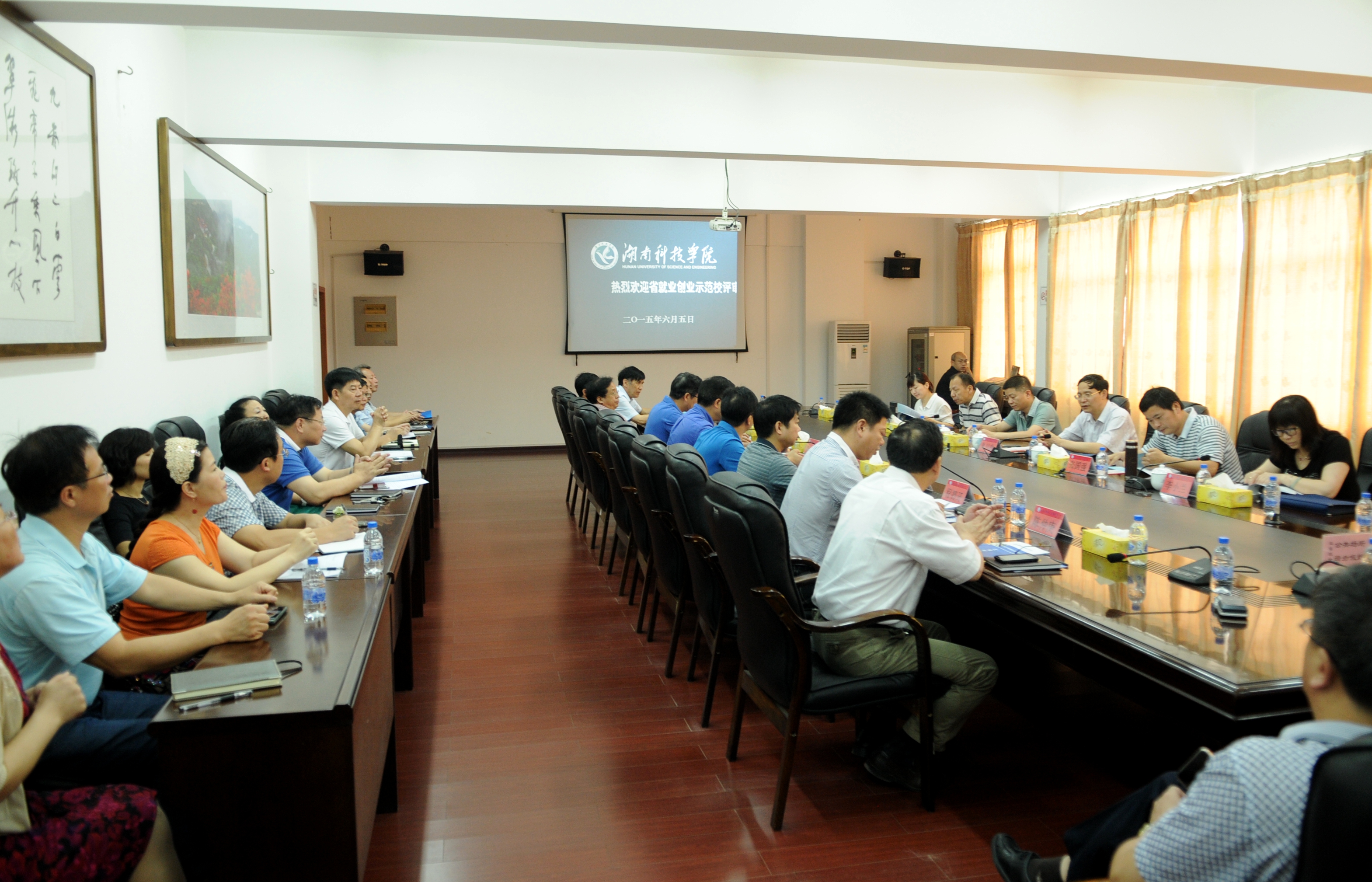 本网讯(记者 段坤 李瑞 摄影 秦峰)6月5日,以湖南科技大学党委副书记朱川曲为组长的省教育厅高校就业创业示范校评审专家组莅临金沙集团,对金沙集团进行省“就业创业示范校”现场考察评审。通过听取汇报、召开座谈会、查阅资料和现场走访等环节,专家组对金沙集团大学生创业就业工作表示高度肯定。