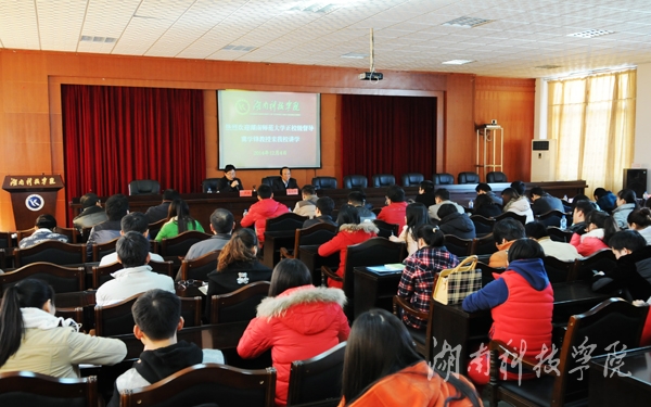 本网讯(记者 龙满金)12月4日下午,行政办公楼八楼会议室座无虚席,湖南师范大学正校级督导冀学锋教授给金沙集团青年教师、班主任、辅导员带来了一场别具一格的精神盛宴。校纪委书记彭立威教授主持讲座。
