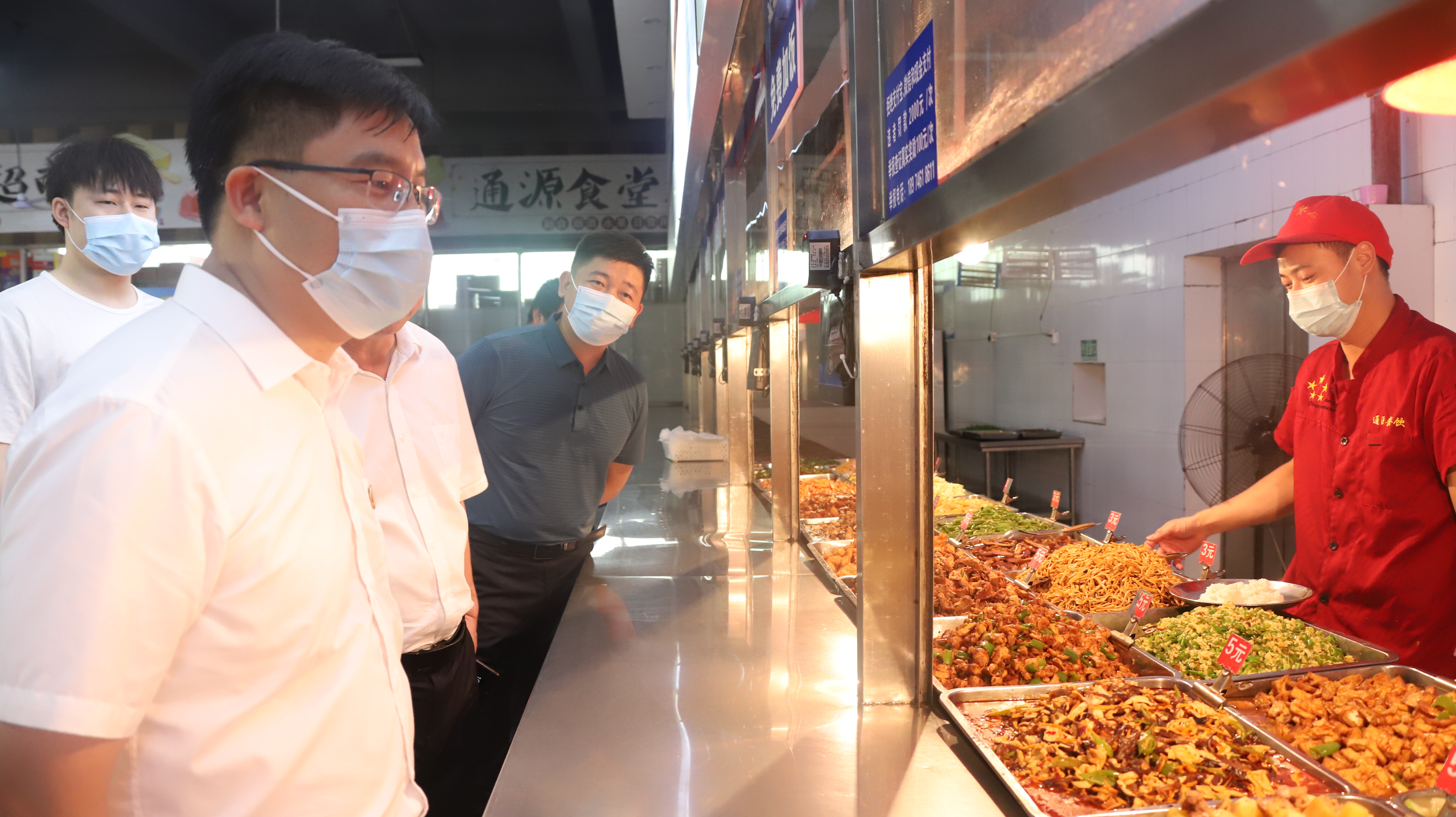 在松园学生食堂,李钢重点强调了公共食品安全问题并仔细询问了食堂每日菜品。得知学生食堂每餐提供百余个菜品保证学生吃饱吃好时,李钢对学生食堂工作人员给予高度评价。