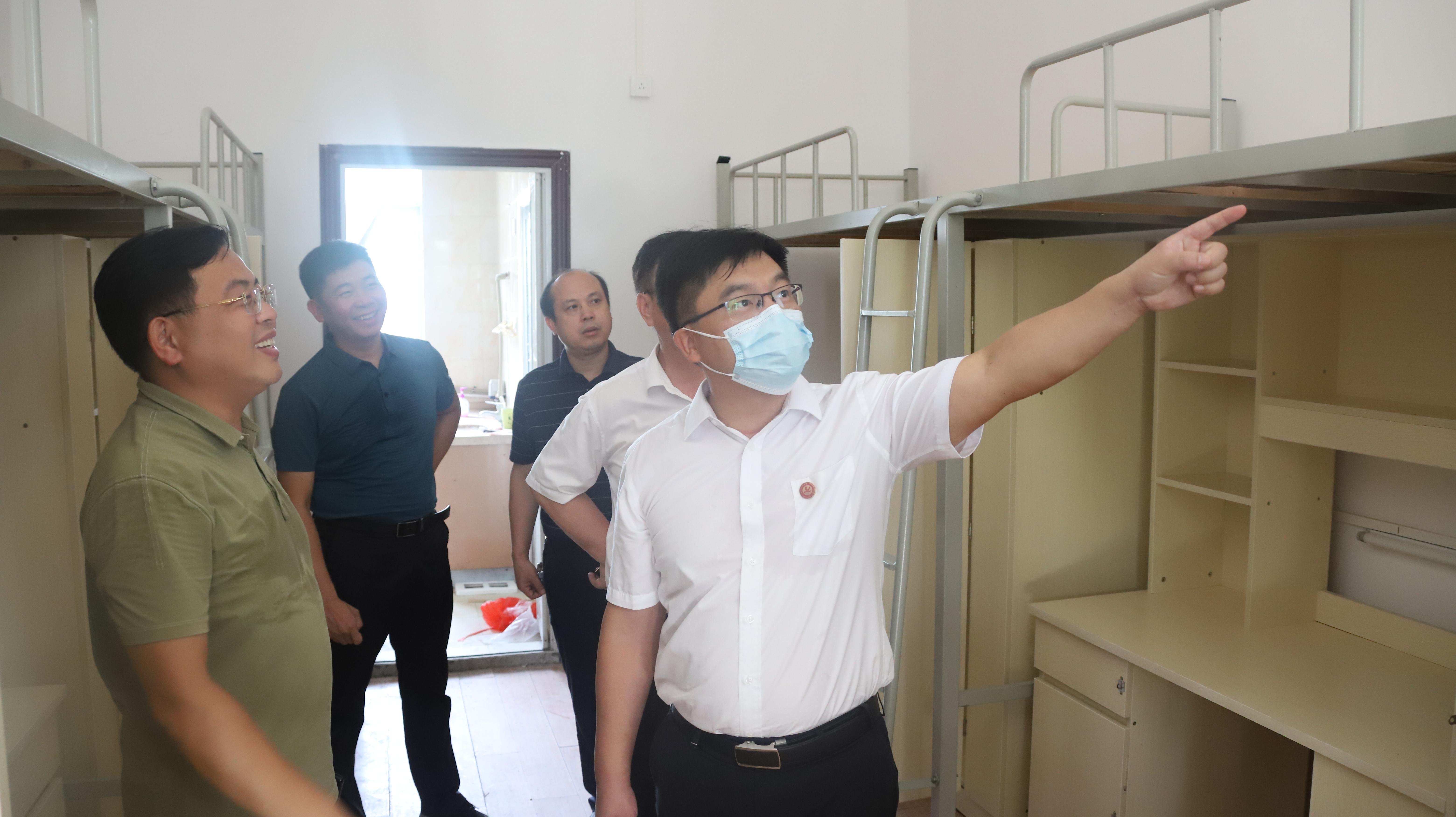 本网讯 8月9日至10日,正值连日高温,校长李钢,副校长吴小林、郑银芳在相关职能部门负责人陪同下,先后到校门口、医务室、图书馆、学生公寓、学生食堂等地,指导检查暑期学校各项工作并慰问坚守在岗的一线教职工。