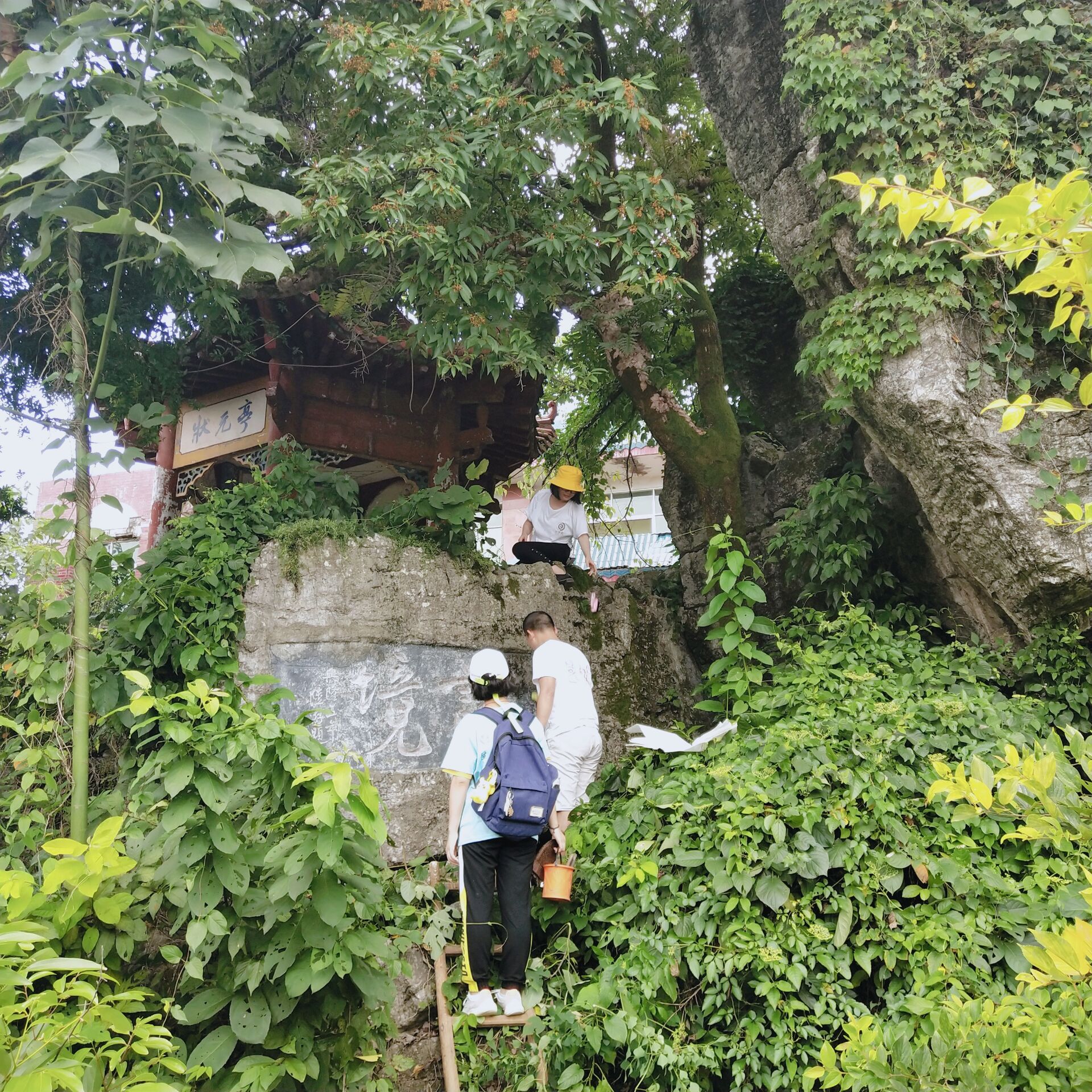 读万卷书,不如行万里路。寒暑假期间,总能见到蔡婕跟随老师四处学习的身影。在江西白鹿洞书院游学之际,恰逢大雪,蔡婕身着传统礼服,满怀对先师圣贤的崇敬,在书院内读书习礼,又往书院外寻访文化古迹。赴韩国训蒙斋游学之时,蔡婕跟随训蒙斋韩国儒林老先生们学习韩国儒家文化,体验韩国山水风光。中韩儒林文化的交流,让蔡婕增长了不少见识,“切身地感受到文化之间的相通,这是件很奇妙的事情。”在道县拓片时,正值酷暑,蔡婕和团队的小伙伴们顶着烈日,在山壁边上一起帮助老师完成摩崖石刻的拓片。有的石刻分布在陡峭的崖壁上,有的石刻被附近茂密的绿植所遮挡,十分影响着拓片工作的进行。遇山搭梯、除草都会是拓片团队常做的事情,面对这些困难,蔡婕说:“拓片是件危险和辛苦的事情,可是想一想因为有拓片,我们的石刻文化才能得到保留,就觉得一切辛苦都值得了。”
