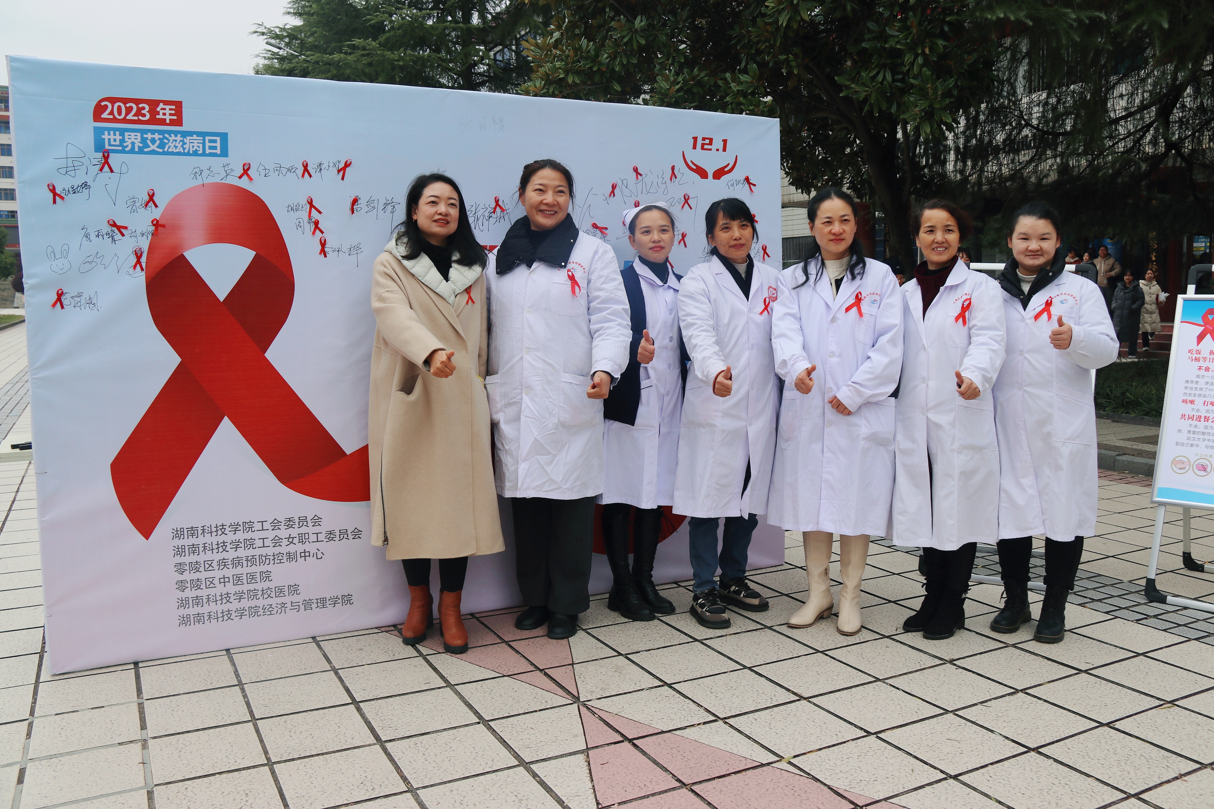 本网讯(记者 罗立可)12月1日,是第36个“世界艾滋病日”。金沙集团工会、工会女职工委员会联合零陵区疾病预防控制中心、零陵区中医医院、校医院、学校经济与管理学院组织开展“世界艾滋病日”宣传教育活动。