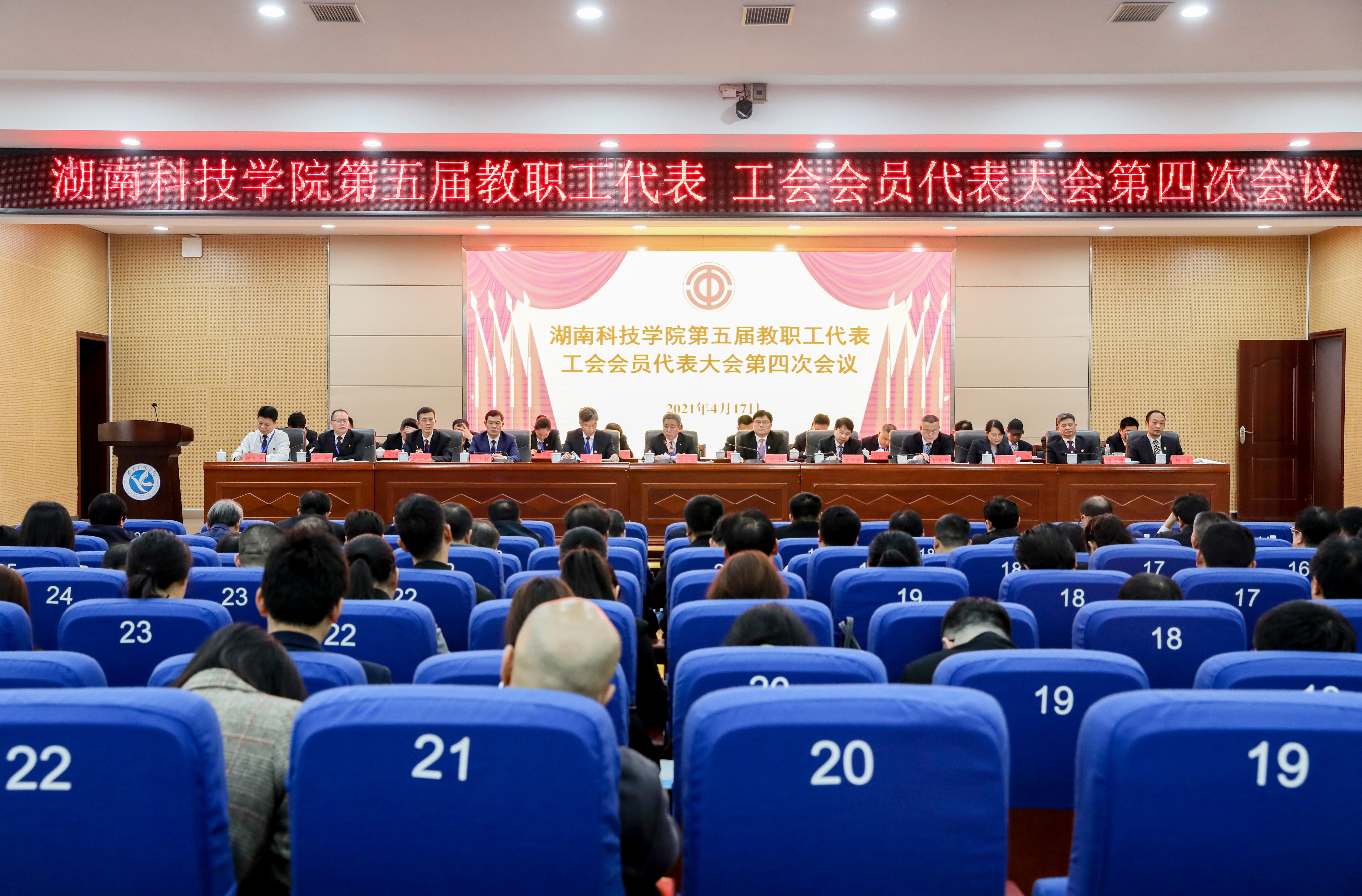 本网讯 4月17日上午,金沙集团第五届教职工代表暨工会会员代表大会第四次会议在潇湘大讲堂开幕。两百余名会议代表、特邀嘉宾、列席代表齐聚一堂,共商改革发展大计。大会主席团主席、党委书记曾宝成主持会议。