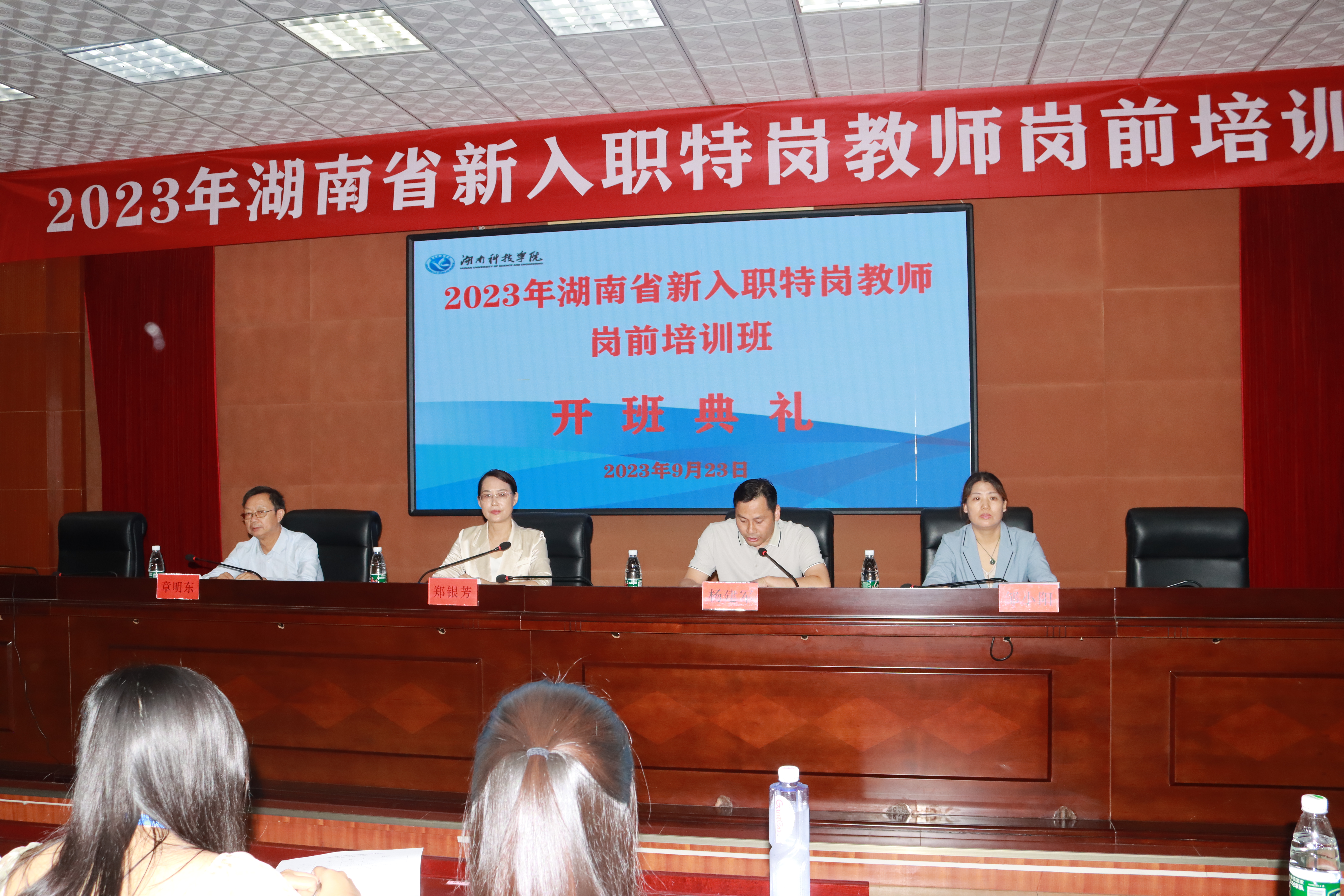 本网讯(通讯员 邹小阳 唐亚男) 9月23日,受湖南省教育厅委托,金沙集团承办的2023年湖南省新入职特岗教师岗前培训班正式开班。副校长郑银芳,参训单位代表新田县教育局人事股章明东参加开班典礼。开班典礼由继续教育学院负责人杨建军主持。