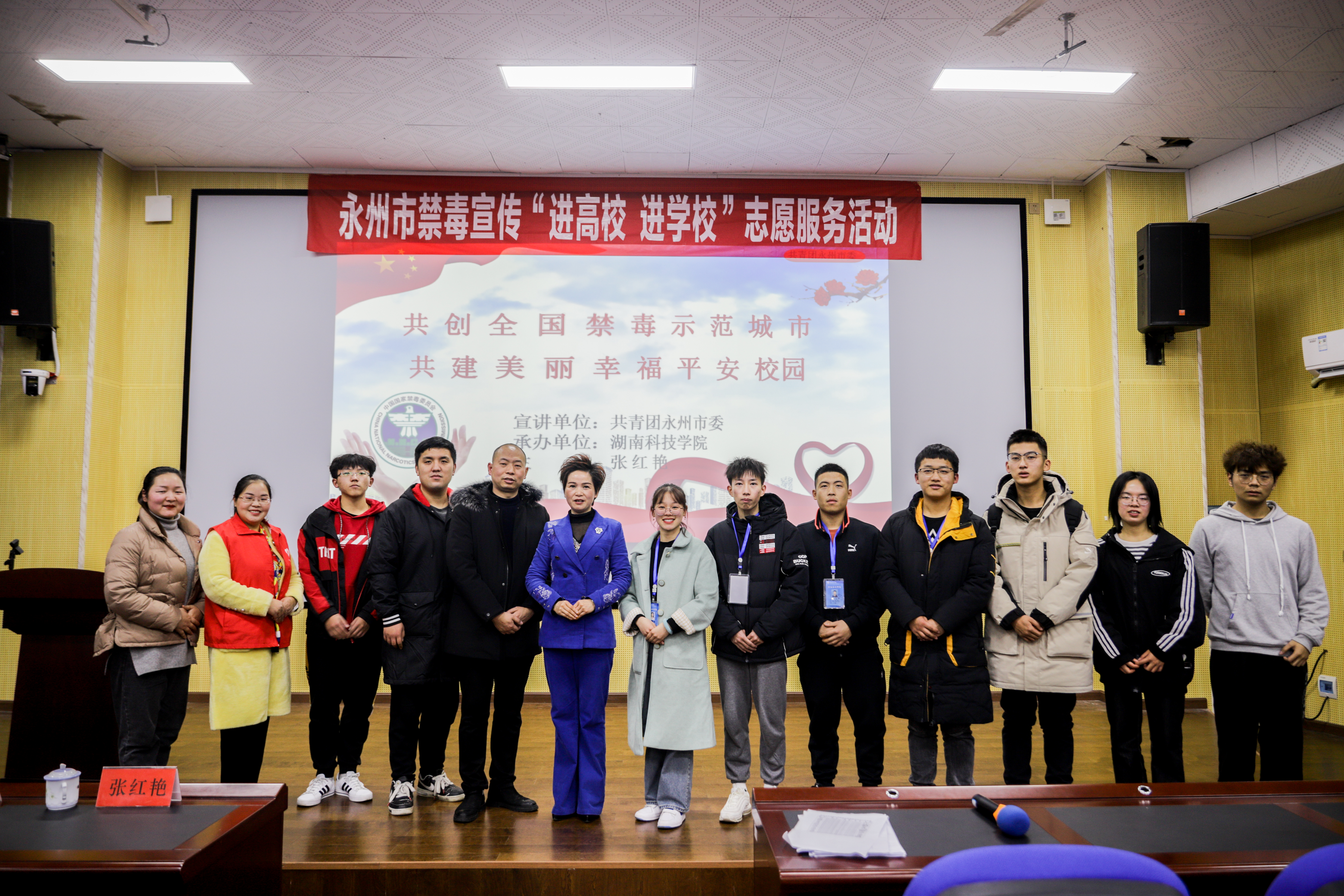 本网讯 12月24日晚,永州市禁毒宣传志愿服务活动在校开展。团市委党组成员、副书记冯志多,校团委副书记彭涛凯参加活动。