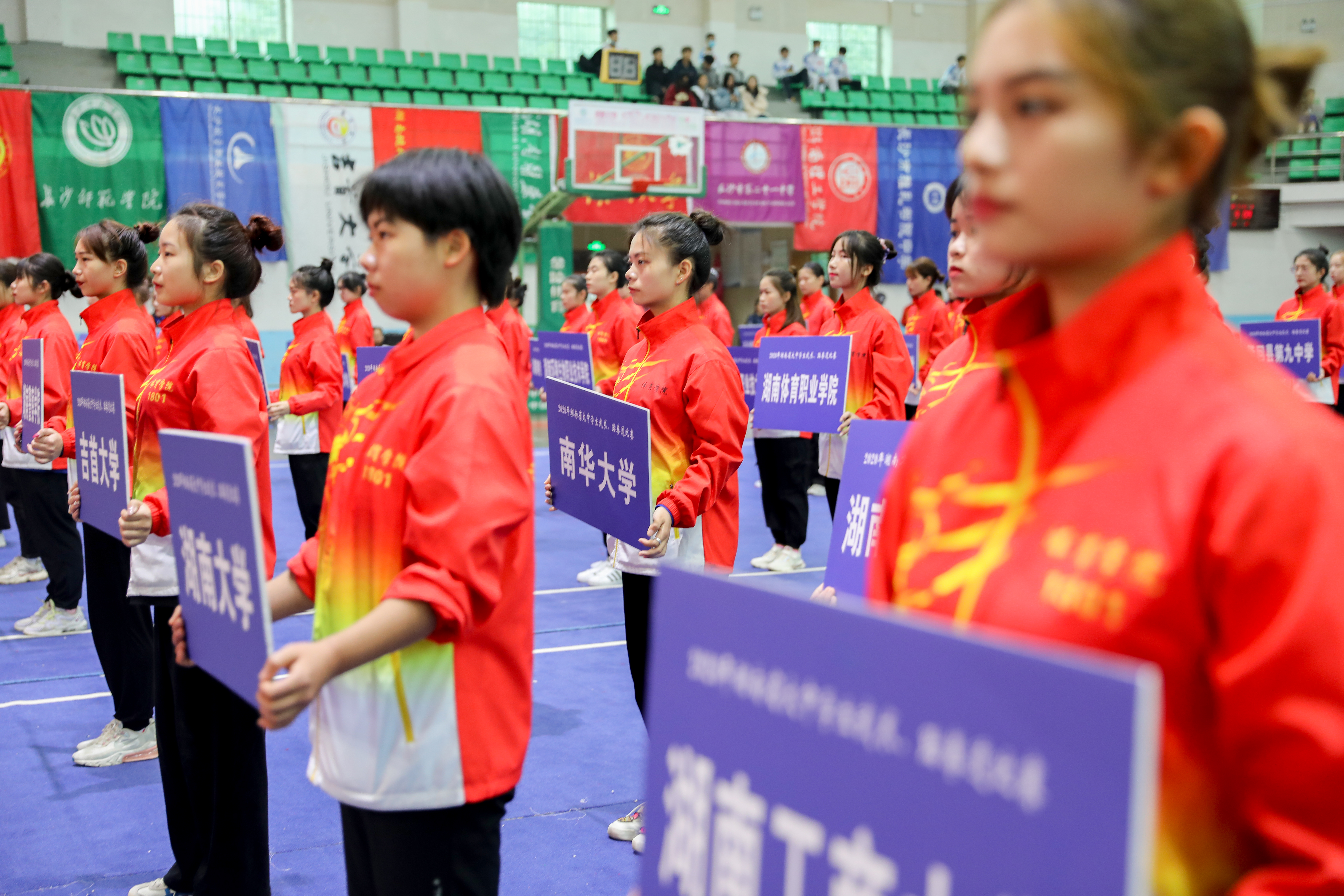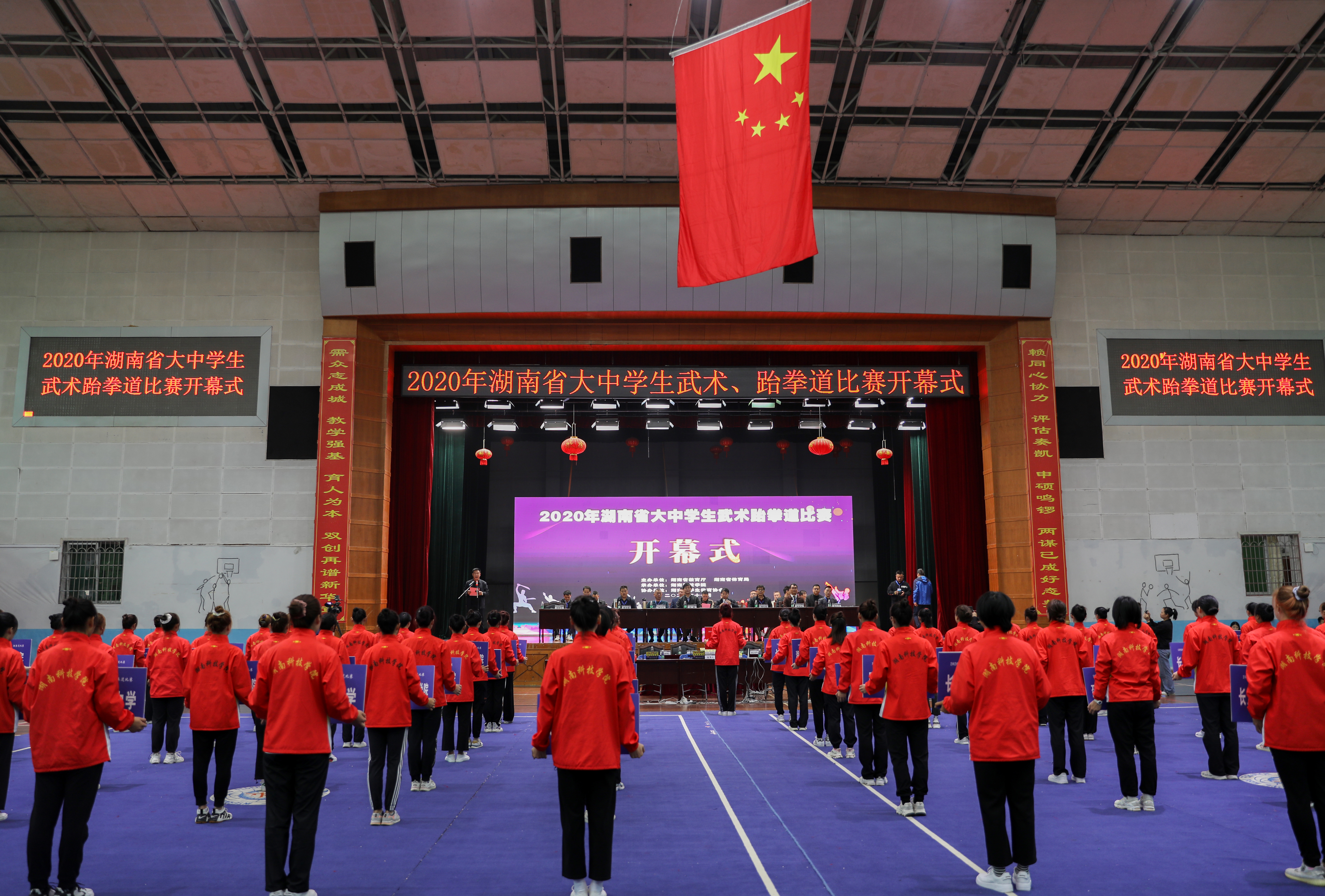 本网讯(记者 陈斯静 实习记者 陈丽杰)11月21日上午,2020年湖南省大中学生武术、跆拳道比赛在金沙集团开幕,来自全省70所大中学校的94支代表队894名运动员参加。
