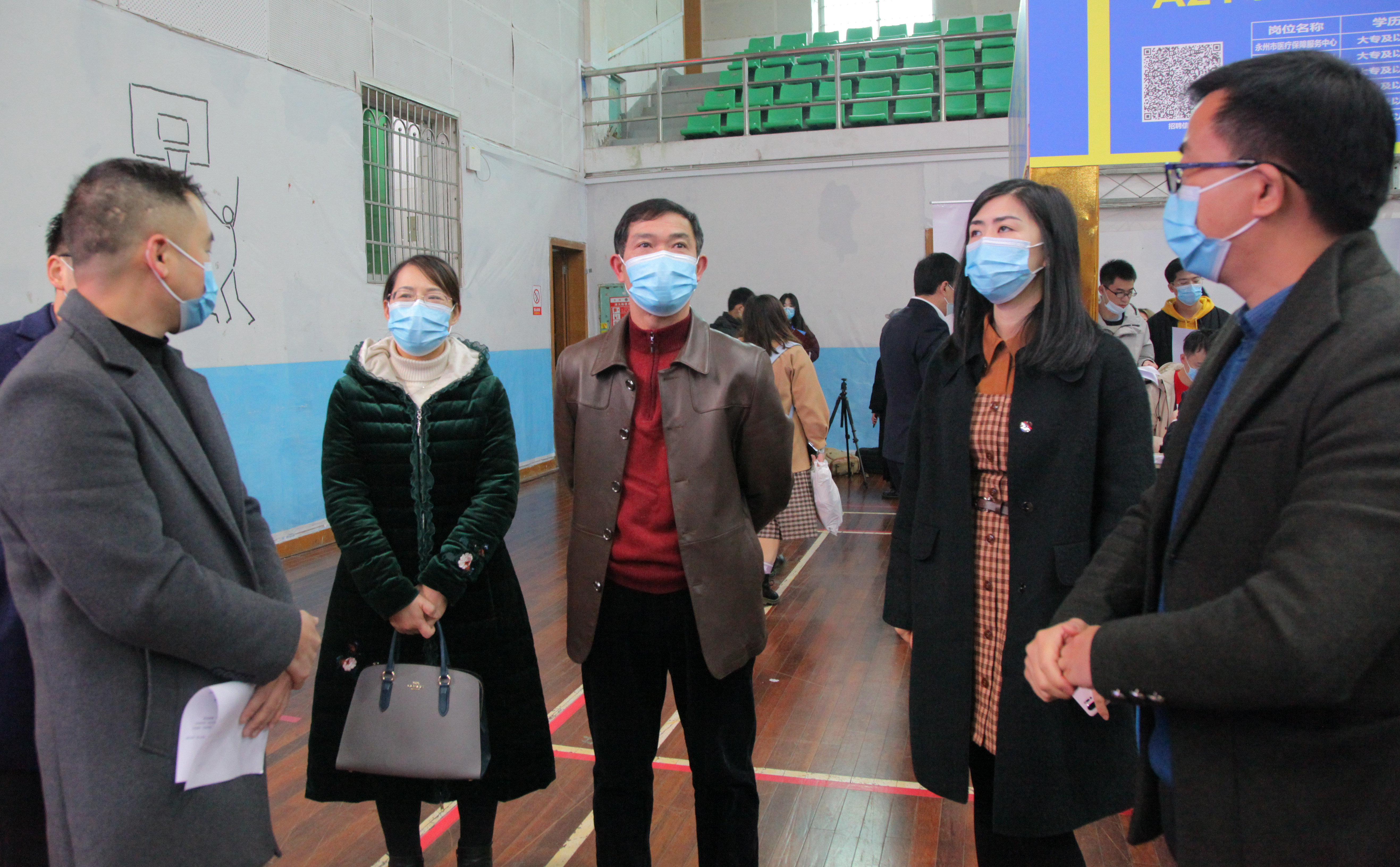 本网讯(记者 黎雪平 实习记者 黄宇莹 唐敏杰)11月28日,由湖南省教育厅、永州市人民政府主办,永州市人力资源和社会保障局、共青团永州市委和金沙集团共同承办的“潇湘际会 青春前行”永州地区普通高校2021届毕业生供需见面会在校举行。来自全国各地的260余家用人单位来校揽才,提供就业岗位14959个,吸引3800余名毕业生进场求职,1230余名毕业生与用人单位初步达成就业意向。副校长吴小林到场指导交流。